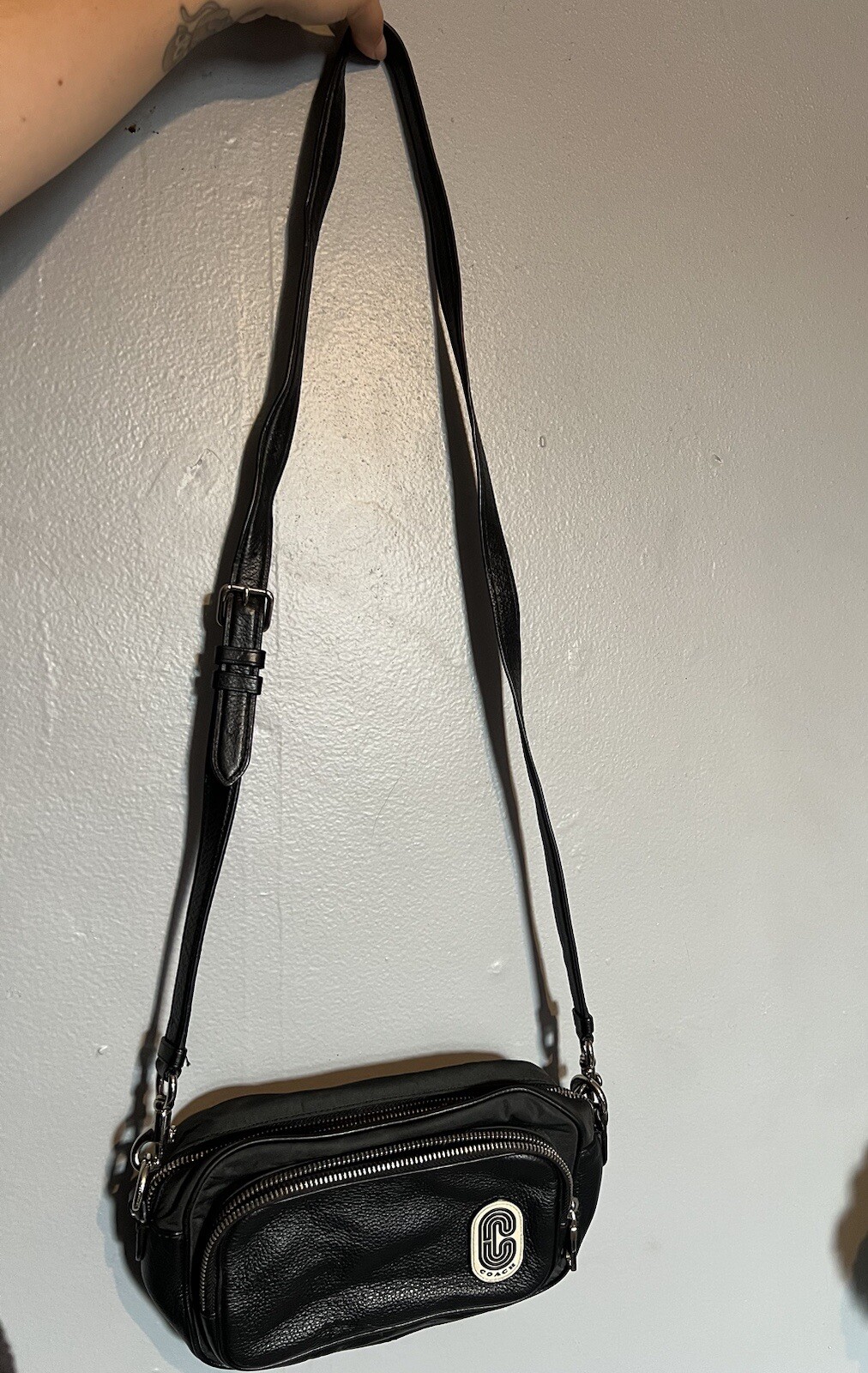 Add a touch of sophistication to your wardrobe with this exquisite Coach purse. Crafted with high-quality leather, this medium-sized bag is perfect for the modern woman on the go. Its sleek exterior is complemented by a spacious interior that provides ample storage space for your daily essentials. Whether you're headed to work or out for a night on the town, this purse is sure to turn heads. With its iconic brand and stylish design, this Coach purse is a must-have for any fashion-conscious woman. Its durable leather construction ensures that it will be a staple in your wardrobe for years to come. So why wait? Add a touch of luxury to your style today with this stunning Coach purse.