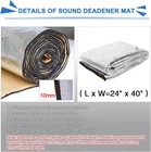 Strong sound insulation and absorption performance,heat insulation mat The surface high-fiber cloth is fiberglass. Heatproof.Block transmit sunlight, engine, exhaust pipe heat to the cab, reduce air conditioning energy consumption, saving fuel Slow down the life pipeline and circuit.In the summer, due to the hot weather, heat comes from the front cover of car,shortening the life of pipeline and circuit, accelerate cracking Slow down the car paint ageing.Because of hot weather, the front outer cover through the direct sun, high temperature inside and outside the engine, accelerated paint aging Keeps Heat In-Cold Out in the Winter, Keeps Cold in-Heat Out in the Summer.In the winter, the engine temperature is very high, but outside is very low when driving, which make car parts damaged easier Product Description Description: Strong sound insulation and absorption performance,heat insulation, Reducing energy consumption with strong performance of heat insution Strong self-viscous performance Installation: 1, Remove the door panels 2, Install the screws back in original place, it will easy be found when you mount, avoiding holes be covered 3, With roller tools will make insulation materials and sheet metal firm fit, and play best adhesive, damping performance 4, According to the effect you want choose construction program, only single Soundproof Plate or single Heat Noise Insulation Cotton or Both them. 5, You can also use on car roof floors, hood , firewall, chassis, trunk room, trunk lid and so on.. Do not cover the chassis wiring or air holes.