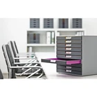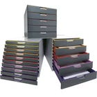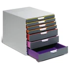 The attractive, innovative VARICOLOR drawer box is made of premium-quality plastic. Fits into all standard office cabinets and sideboards when placed side by side. Each drawer is color-coded to aid document organization. Stackable, with skidproof plastic feet. Attractive and contemporary drawer box helps organize cluttered desks. Made of premium-quality plastic in gray, each drawer is color-coded to aid document organization. Colorful drawers hold A4, C4, folio, and letter-size paper formats. Drawer stops enable smooth and soundless opening. Fits into all standard office cabinets and sideboards when placed side by side.