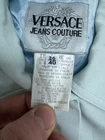 This is a Versace Jeans Couture skirt suit for women in size 40. The suit is in a pale blue color and features a regular size type. It falls under the category of Suits & Suit Separates and Women's Clothing.