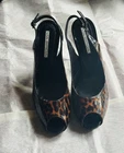 DOLCE & GABBANA BLACK PONY HAIR PATENT POINTED TOE LOGO SLING BACK HEELS 38 US 8