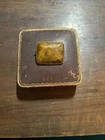 Agate square brooch. Not marked but tests as 14k and weighs 8.9g. Seems to be completely original and in good condition. Box is for display purposes only and not included.