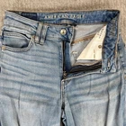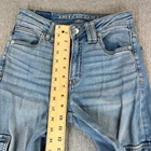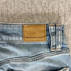 great vintage condition please examine all photos for flaws measurements and exact fit. No hassle returns and all items are shipped out daily Monday through Friday thank you. Denim dreams become reality with these light-wash jeans! Featuring a super high-rise waist and trendy baggy wide legs, they offer both comfort and style. The unique cargo pockets add a touch of utility and edge. Note the frayed hem at the ankle, which adds to the laid-back aesthetic. Be aware of the minor green stains on one of the cargo pockets, as highlighted in the pictures. These jeans are perfect for casual outings, weekend adventures, or stylish everyday wear. Style: Wide-Leg Color: Blue Department: Women Type: Jeans Fabric Wash: Light Accents: Button Features: Cargo Pockets, Stretch, High-Rise, Baggy, Frayed Hem Pattern: Solid Rise: High (Greater than 10.5 in) Fabric Type: Denim Material: Cotton, Cotton Blend, Spandex, Lyocell, Viscose Closure: Button Keywords: American Eagle, Jeans, Cargo Jeans, Wide Leg Jeans, Baggy Jeans, High Rise Jeans, Light Wash Jeans, Denim, Women's Jeans, Size 00, Super High-Rise