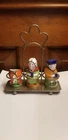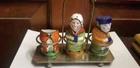 Wonderful vintage Crown Staffordshire toby FIGURAL salt and pepper shakers with toothpick HOLDER in SILVERPLATE stand. Shakers have their RARE PORCELAIN bottoms, thathold the corks. No chips or cracks. Wear to SILVERPLATE stand. RETURNS ARE ACCEPTED. ALL RETURNS MUST BE APPROVED. ITEMS MUST BE RETURNED IN THE CONDITION IN WHICH THEY WERE SENT. RETURN SHIPPING IS PAYED BY THE BUYER UNLESS OTHERWISE NOTED.