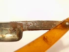 Here is a vintage Schrade Cutlery Co., Walden, NY straight razor with a translucent yellow handle. It measures about 6 inches from end to end when closed. The blade alone measures about 5 1/2 inches from tip to tip and is about 5/8 inches wide. The razor shows some corrosion, dirt, staining and normal wear. The labeling is partly obscured with only some of the Schrade name visible. Please see the pictures and ask any questions. Thank you for looking. (Inv A27,835)