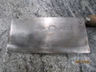 Pictures give a good description. Cleaver is solid. There is no evidence of pounding on the spine and no nicks on the blade.