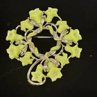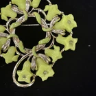 Add a touch of vintage charm to your outfit with this beautiful flower brooch. Crafted from gold-tone metal, this brooch features a lovely green color that will complement any outfit. Measuring at 2 inches in length, this brooch is perfect for any occasion, whether it be a birthday, anniversary, christening, or even Christmas. The brooch is designed in the shape of a flower and features a stunning green main stone color. The plastic material adds a unique touch to the brooch, making it a perfect addition to your vintage jewelry collection. This brooch is perfect for anyone who loves vintage jewelry and wants to add a touch of elegance to their outfit.