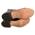 These black leather western cowboy boots are a men’s 8.5 or a women’s 10.5. They are in good vintage condition but do have creasing on the toes. I think it’s just bc they have been I storage so long. W/some conditioner & wear I think they will loosen up.