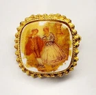 This vintage gold brooch is a stunning piece of jewelry inspired by the Victorian era. The intricate design is sure to catch anyone's eye and add a touch of elegance to any outfit. The brooch is made with high-quality materials, including gold, and is perfect for anyone who loves antique jewelry. The brooch is ideal for those who appreciate the beauty of vintage jewelry and want to add a unique piece to their collection. It is perfect for anyone who loves to accessorize and wants to add a touch of class to their outfit. This brooch is a must-have for anyone who loves antique jewelry and wants to make a statement.