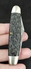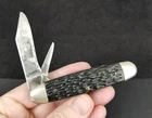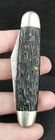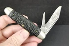 Good old pocket knife from an estate sale out of Newark Ohio. Kutmaster Utica Cut Co. pocket knife. Double blade. Older carbon steel blades. Made in the USA. Cigar shape. No damage found on handles. One of the bolsters has some dings. Both blades open. No snap left. Blades in the condition seen in pictures. SEE PICTURES. 3 5/8" long when closed. Will be protected well and insured. Let me know if you have questions. Thanks Location E2