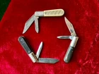 Lot of eight knives. Three Barlows, one Imperial large toothpick, one "USA", one Smith & Wesson Texas Hold'em (I think pearl handle), one AJ Gonzales promo Model A Ford. All blades with excellent opening and closing operation. Added bonus - Browning Centennial 1878 - 1978 leather key fob.