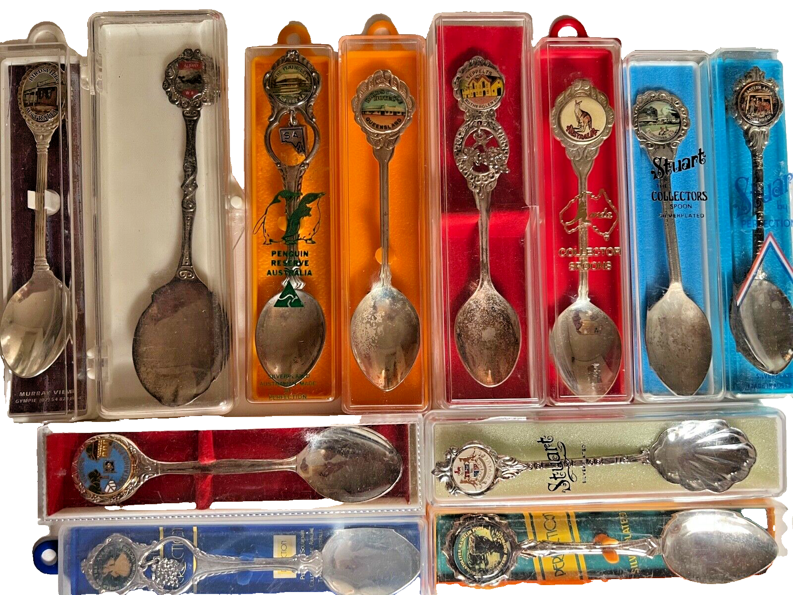 32 spoons sold as one lot not for individual sale 12 are boxed & 20 other loose spoons Explore a diverse collection of 32 souvenir spoons, each boasting a unique design that captures the essence of Australia rich heritage and famed landmarks. The spoons are a mix of various metals, including silver plate, pewter, stainless steel, chrome, metal, and alloy, 50's 60's 70's 80's vary conditions vary , non are seriously damaged , but most will require a polish up Vintage Collectible Souvenir Spoon This listing is for a vintage collectible souvenir spoon , offered in used vintage condition . These spoons have been enjoyed and treasured over time and may show signs of age and gentle wear consistent with their history. Some pieces may benefit from light polishing if you prefer a brighter finish. Please note this is a vintage item, not new , and minor surface marks, patina, or age-related wear should be expected. I encourage buyers to carefully view all photos and read the full description prior to purchase, as photos form an important part of the condition description. ✨ Collecting more? I have many other vintage souvenir spoons available — you’re very welcome to visit my eBay store to browse the collection. Buyers wishing to purchase multiple spoons or bulk lots are encouraged to get in touch prior to checkout, as combined or bulk shipping may be possible. 🌍 International buyers: International shipping is unavoidably high due to rising postal costs, packing requirements, and current international shipping conditions. Buyers are responsible for all additional charges that may apply, including customs fees, duties, tariffs, and taxes imposed by their country. 🇺🇸 Special note for USA buyers: Please be aware that tariffs may apply to shipments entering the United States. All tariffs, duties, customs charges, and related fees are the responsibility of the buyer. 📦 All items are carefully packed with great care to ensure safe arrival. Thank you for looking — and happy collecting! Check out my other items ! Be sure to add me to your favourites list ! ( MY CODE bx 2 / lot D 1 / 15 eb. mixed lot D 1 x 32