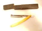 Here is a vintage straight razor marked A. Clauberg, New York, Made in Germany. On the opposite side it shows a brand name or type of razor but some lettering is obscured "Tonscrial Sen.." The razor measures about 6 1/8th inches long. The blade itself measures about 5 1/2 inches from end to end and is about 9/16th inches wide. The razor is in overall sound condition but has some dirt, spots of corrosion and initials on the handle, and other signs of wear and use. The box is not original with the razor. Please see the pictures and ask any questions. Thank you for looking. (Inv A24,453)