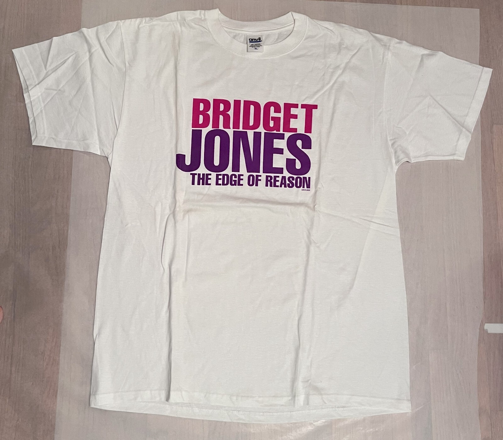 Embrace the charm of a vintage Bridget Jones The Edge of Reason (2004) studio production T-shirt, a must-have for fans and collectors alike. Crafted by Anvil, this classic-fit, white cotton tee features a comfortable crew neck and short sleeves, perfect for everyday wear or casual outings. The shirt is adorned with the iconic Bridget Jones logo, adding a touch of movie nostalgia.This unisex adult T-shirt comes in a size XL, preshrunk for optimal fit. Its durable construction, made in Honduras, ensures longevity while maintaining the timeless appeal of a well-loved vintage piece. Whether you're heading to a movie event or just lounging at home, this shirt is a versatile addition to any wardrobe.