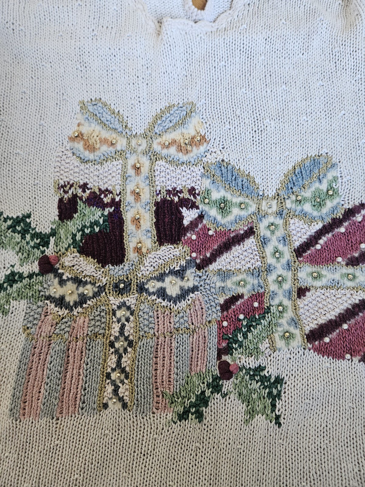 The vintage Talbots Christmas sweater is a classic and cozy pullover designed for women in size large. Made with a festive white color and featuring a Christmas-themed pattern, this sweater is perfect for spreading holiday cheer. Its vintage feel adds a unique and nostalgic touch to your winter wardrobe, making it a stylish and festive addition to any Christmas outfit. NOTE: has slight discoloration on the shoulder. Picture included for reference