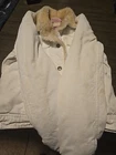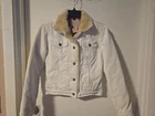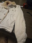 Nice vintage jacket it is white i see no VISIBLE STAINS it is not I REAPEAT NOT BRIGHT WHITE IT IS DINGY I WASHED but it still it not bright bright white I didn't wanna bleach So I am pricing accordingly There are No holes