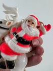 vtg Christmas Xmas 50s 60s Santa Claus on Reindeer hard plastic