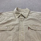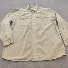 Shirt color is a shade between olive green and brown. The shirt has distressing on both sleeves and a pin hole on the bottom front hem line. Please see photos for details and actual measurements. Check out our store Retro-Lab Thousands of similar items. Shipping is set to automictically discount on orders of more than one. $1.50 for each item after the first. We do our absolute best to try and document and photograph any flaws in the items, in case we miss something we are happy to accept returns. 30 day free returns on all clothing items, for any reason. All returns are free to you, but expensive to us so please review the measurements prior to purchase. Item measurements are approximate and located at the end of the photos. Pre-owned clothing sizing can change due to washing and wear. Offers can not be combined with coupons. All Items will be shipped with a tracking # for your verification. We ship out daily, so you can expect fast delivery! If you have any questions at all please email us.