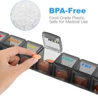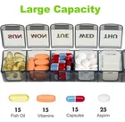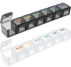 Weekly Pill Organizer Travel Pill Organizer Pill Box 7 Day Large Compartments BPA Free Portable Easy to Clean for Vitamin Fish Oil Cod Liver Oil Medicine Supplements 2pcs Black+White Features & details WEEKLY PILL ORGANIZER: The 7 day pill organizer consists of 7 compartments which can help you easily plan and dispense daily doses This pill container is light-weight and portable whether it is for work or travel it can effectively help and reminds you to stay on your medication regimen The pill box is translucent for easy visual confirmation that you have taken your pills LARGE CAPACITY SMALL VOLUME: Each inner compartment of the medicine organizer box can store 15 fish oil or 15 vitamins or 30 small daily pills The large pill organizer has enough room to fill and sort all your pills for the week The size of each compartment of the pill box is 1.1 x 1.3 x 1.1 inches the size of the whole pill box is 8.5 x 1.5 x 1.1 inches SAFETY AND HEALTH: Our daily pill box organizers are made of food-grade BPA-free material healthy and safe You can safely put your pills or nutritional supplements in the medicine organizer box The translucent pill box and the date marking on the lid allow you to easily tell them apart without opening the lid 2 WEEK PILL ORGANIZER EASY TO USE: The serrated flap makes it effortless to open The secure lid keeps out dust or moisture and keeps the daily pill box organizer closed and prevents spills if dropped Each lid is printed with lettering to indicate the day of the week Wash in mild soapy water and allow to dry before first use WEEKLY PILL ORGANIZER IS DURABLE: The font on the lid of the medicine organizer box adopts the upgraded UV printing technology which has passed the tape test The font is wear-resistant and not easy to wipe off so you don’t have to worry about the font disappearing The day of the week on the lid lets you know what to eat today and it's built to last for repeated use Perfect for taking your pill organizer to work on errands or while traveling Who need our pill organizer? Elderly People / Forgetful People / Multiple-medications-taken People / People not taking medicine properly and regularly/People who need to take vitamins everyday/To ensure, patient has taken or not taken medicine/Fitness people Maintenance and Care: 1.For the first use, rinse with water or soapy water and use after drying. 2.After use, please wash and dry to store. 3.As with all medication storage devices, keep out of reach of children and pet. 4.Keep the pill organizer away from high temperatures and humid environments. Our daily pill box organizer is made of food-grade BPA-Free materials, safety and health. Suitable size for your bag, travel friendly.Our pill organizer worth trying.