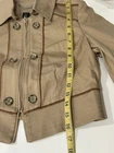 This White House Black Market cropped military style jacket in size 2 is a stylish and versatile addition to any wardrobe. Made from a durable cotton blend outer shell with a soft polyester lining, this short-length jacket features a solid white color with button accents for added detail. Perfect for various occasions such as parties, casual outings, or business meetings, this jacket is designed with long sleeves and a full zip closure for easy wear. With its classic military-inspired theme, this designer piece is perfect for the winter, fall, and spring seasons, making it a must-have for any fashion-forward woman.
