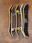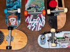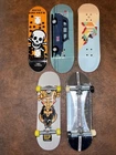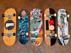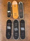 All 22 finger boards tech decks are pre owned with 13 being complete and 9 being incomplete (boards only) with varying conditions from good to very good condition. The 13 complete tech decks have their complete truck housings, wheels, truck screws, and wheel nuts and are grip taped. The 9 incomplete boards are boards only and do not have any truck housings, wheels, truck screws, and or wheel nuts. Please refer to pictures for further details on condition of the items. All items are sold as is as pictured. The product is a set of (x22) Tech Deck mini skateboard fingerboards featuring Aliens from the Alien Workshop and Finesse brands. The fingerboards are multicolor and made of plastic and metal, with a 1:8 scale. They were manufactured in 2008 by Spin Master in the Tech Deck series. Each fingerboard is a miniature skateboard ready for use in skateboarding-themed play, representing the sport of skateboarding.