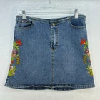 pre-loved, overall Good condition, waist elastic is slightly worn BUBBLEGUM y2k Vintage Floral Denim Mini Skirt Zipper Closure Size 11/12 #floral #mini #y2k #vintage #denim #summer #casual #spring See Photos for Measurements SK168